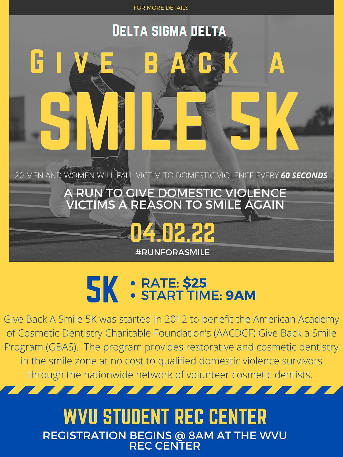 Give Back A Smile 5k Wvu Student Recreation Center Morgantown 2 April 2022